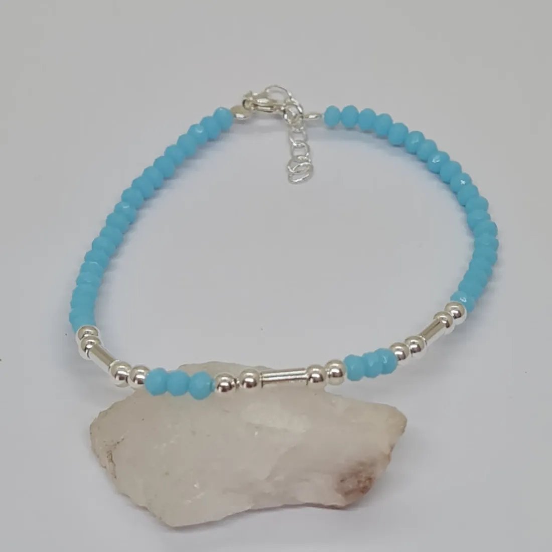 Pulsera Cristal De Roca Celeste
