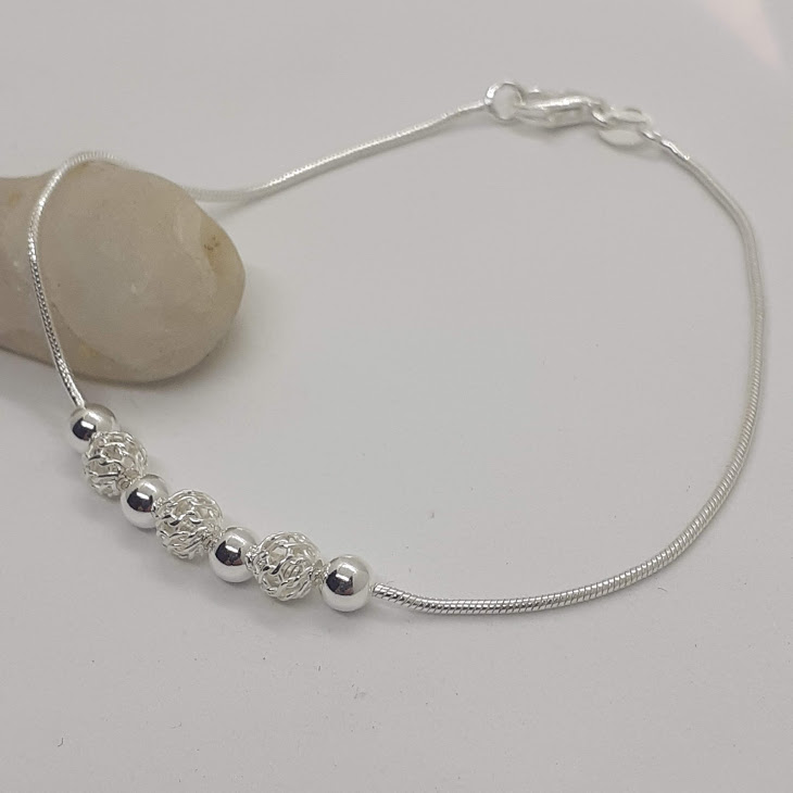 Pulseras Bolas de Plata Continuas