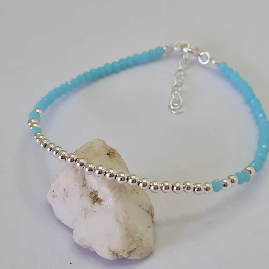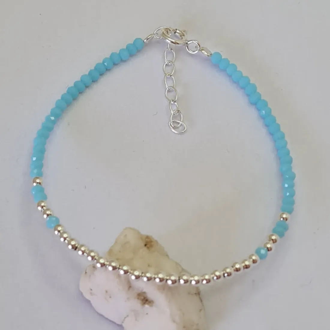 Pulsera Cristal Celestes Y Bolitas